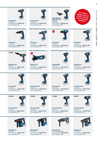 GSB 18V-21in L-BOXX0%u2005601%u20059H1%u2005108 / 179.00* CHFServicekategorie: BGDR 18V-200in L-BOXX0%u2005601%u20059J2%u2005106 / 227.00* CHFServicekategorie: BGDS 18V-450 HCin L-BOXX0%u2005601%u20059K4%u2005001 / 347.00* CHFServicekategorie: BGDS 18V-1000 Cin L-BOXX0%u2005601%u20059J8%u2005001 / 430.00* CHFServicekategorie: CGBH 18V-24 Cin L-BOXX0%u2005611%u2005923%u2005002 / 373.00* CHFServicekategorie: BGDX 18V-285in L-BOXX0%u2005601%u20059N2%u2005100 / 235.00* CHFServicekategorie: BGDS 18V-1050 Hin L-BOXX0%u2005601%u20059J8%u2005501 / 401.00* CHFServicekategorie: CGBH 18V-26 Dim Handwerkerkoffer0%u2005611%u2005916%u2005000 / 322.00* CHFServicekategorie: BGDS 18V-330 HCin L-BOXX0%u2005601%u20059L5%u2005001 / 316.00* CHFServicekategorie: BGDS 18V-1050 HCin L-BOXX0%u2005601%u20059J8%u2005201 / 430.00* CHFServicekategorie: CGBH 18V-26in L-BOXX0%u2005611%u2005909%u2005001 / 404.00* CHFServicekategorie: BGDS 18V-350in L-BOXX0%u2005601%u20059M5%u2005000 / 235.00* CHFServicekategorie: BGDS 18V-1600 HCin L-BOXX0%u2005601%u20059M1%u2005001 / 471.00* CHFServicekategorie: CGBH 18V-22 Xin L-BOXX0%u2005611%u2005924%u2005102 / 320.00* CHFServicekategorie: BGSB 18V-25in L-BOXX0%u2005601%u20059K9%u2005301 / 160.00* CHFServicekategorie: BGSR 18V-90 Cin L-BOXX0%u2005601%u20059K6%u2005002 / 278.00* CHFServicekategorie: BGDR 18V-215in L-BOXX0%u2005601%u20059N2%u2005000 / 191.00* CHFServicekategorie: BGSB 18V-45in L-BOXX0%u2005601%u20059K3%u2005301 / 206.00* CHFServicekategorie: BGSR 18V-90 FCim Karton 0%u2005601%u20059K6%u2005202 / 272.00* CHFServicekategorie: BGSB 18V-150 Cin L-BOXX0%u2005601%u20059J5%u2005102 / 399.00* CHFServicekategorie: BGTB 18V-45in L-BOXX0%u2005601%u20059K7%u2005001 / 256.00* CHFServicekategorie: BGSR 18V-90 FC INKL. GFA 18-M, GFA 18-Hin L-BOXX0%u2005601%u20059K6%u2005204 / 505.00* CHFServicekategorie: BGDR 18V-127im Karton 0%u2005601%u20059N5%u2005000 / 392.00* CHF Servicekategorie: BAkku-Winkelbohrmaschine Akku-DrehschlagschrauberAkku-Trockenbohrschrauber Akku-SchlagbohrschrauberDie meistenModelle sind alsL-BOXX- und als Karton-Varianteerh%u00e4ltlichNEU!NEU!Bosch PRO NEWS Schweiz | 01.09.%u2009%u2013%u200931.12.2025 | Tertial 317