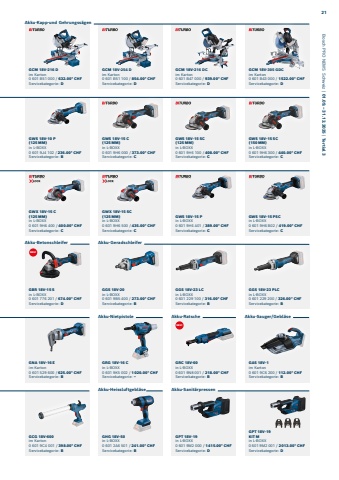 GCG 18V-600im Karton 0%u2005601%u20059C4%u2005001 / 398.00* CHF Servicekategorie: BGWX 18V-15 C(125%u2009MM)in L-BOXX0%u2005601%u20059H6%u2005400 / 400.00* CHFServicekategorie: CGWS 18V-10 P(125%u2009MM)in L-BOXX0%u2005601%u20059J4%u2005102 / 236.00* CHFServicekategorie: BGGS 18V-20in L-BOXX0%u2005601%u20059B5%u2005400 / 273.00* CHFServicekategorie: BGRG 18V-16 Cin L-BOXX0%u2005601%u20059K5%u2005002 / 1%u2009020.00* CHFServicekategorie: %u2013GHG 18V-50in L-BOXX0%u2005601%u20052A6%u2005501 / 241.00* CHFServicekategorie: BGRC 18V-60in L-BOXX0%u2005601%u20059N8%u2005001 / 218.00* CHFServicekategorie: BGPT 18V-19in L-BOXX0%u2005601%u20059M2%u2005000 / 1%u2009415.00* CHFServicekategorie: DGAS 18V-1 im Karton 0%u2005601%u20059C6%u2005200 / 112.00* CHF Servicekategorie: BGPT 18V-19 KIT Min L-BOXX0%u2005601%u20059M2%u2005001 / 2%u2009013.00* CHFServicekategorie: DGNA 18V-16 Eim Karton 0%u2005601%u2005529%u2005600 / 625.00* CHF Servicekategorie: BGWX 18V-15 SC(125%u2009MM)in L-BOXX0%u2005601%u20059H6%u2005500 / 435.00* CHFServicekategorie: CGWS 18V-15 C(125%u2009MM)in L-BOXX0%u2005601%u20059H6%u2005000 / 373.00* CHFServicekategorie: CGGS 18V-23 LCin L-BOXX0%u2005601%u2005229%u2005100 / 316.00* CHFServicekategorie: BGWS 18V-15 Pin L-BOXX0%u2005601%u20059H6%u2005A01 / 389.00* CHFServicekategorie: CGWS 18V-15 SC(125%u2009MM)in L-BOXX0%u2005601%u20059H6%u2005100 / 408.00* CHFServicekategorie: CGGS 18V-23 PLCin L-BOXX0%u2005601%u2005229%u2005200 / 326.00* CHFServicekategorie: BGWS 18V-15 PSCin L-BOXX0%u2005601%u20059H6%u2005B02 / 419.00* CHFServicekategorie: CGWS 18V-15 SC(150%u2009MM)in L-BOXX0%u2005601%u20059H6%u2005300 / 440.00* CHFServicekategorie: CGBR 18V-15 Sin L-BOXX 0%u2005601%u2005776%u2005201 / 674.00* CHFServicekategorie: DGCM 18V-216 D im Karton 0%u2005601%u2005B51%u2005000 / 632.00* CHF Servicekategorie: DGCM 18V-254 D im Karton 0%u2005601%u2005B51%u2005100 / 854.00* CHF Servicekategorie: DGCM 18V-216 DC im Karton 0%u2005601%u2005B47%u2005000 / 939.00* CHF Servicekategorie: DGCM 18V-305 GDC im Karton 0%u2005601%u2005B43%u2005000 / 1%u2009522.00* CHF Servicekategorie: DAkku-GeradschleiferAkku-Nietpistole Akku-Ratsche Akku-Sauger/Gebl%u00e4seAkku-Heissluftgebl%u00e4se Akku-Sanit%u00e4rpressenAkku-BetonschleiferAkku-Kapp-und Gehrungss%u00e4genNEU!NEU!Bosch PRO NEWS Schweiz | 01.09.%u2009%u2013%u200931.12.2025 | Tertial 321