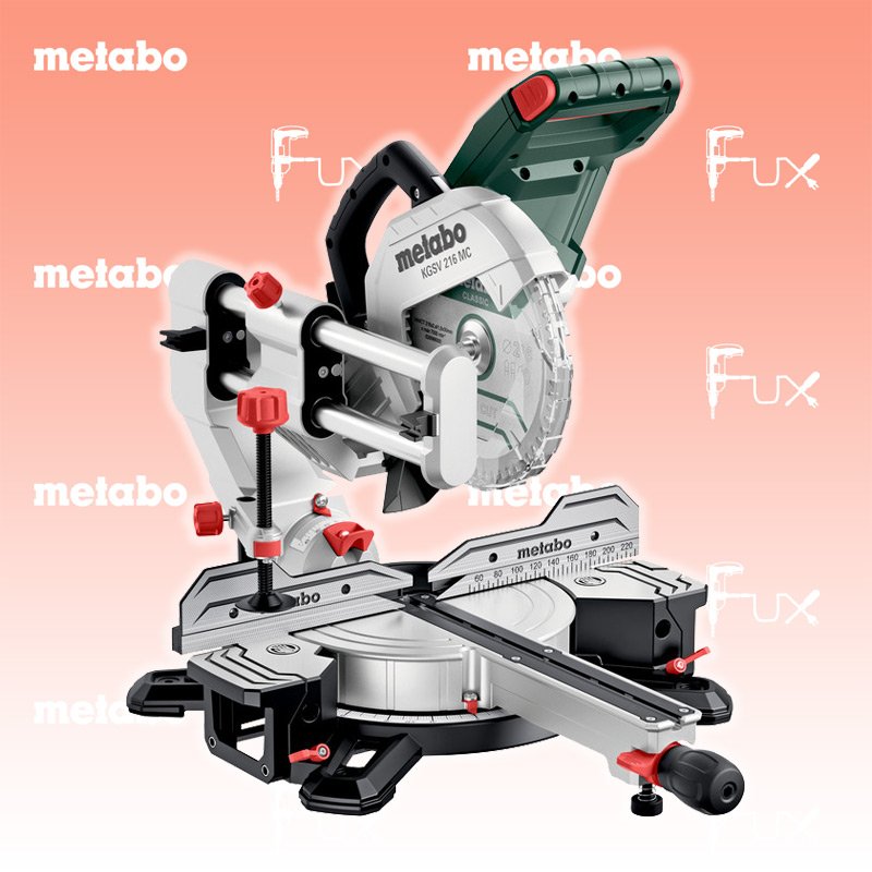 Zu "Gehrungs - und Kappsägen" von Metabo Metabo KGSV 216 MC Gehrungs- und Kappsäge Bestell- und Artikelnummer: 615216000 Vielseitige Kappsäge mit maximaler Ausstattung: variable Drehzahl, kompakte Zugfunktion, beidseitige Sägekopfneigung und vieles mehr Precision Cut Line (PCL): exakte Schatten-Schnittlinie ohne Nachjustieren durch clever platzierte LED Kompakt konstruierte Zugfunktion ohne Platzbedarf hinter der Säge Maximale Flexibilität beim Sägen durch beidseitig drehbaren Tisch und beidseitig neigbaren Sägekopf Variable Drehzahl für erweitertes Einsatzspektrum, z.B. zum Sägen von Alu-Profilen und Kunststoffen Effektive Spanabsaugung über integrierten Spänefangtrichter Sanftanlauf für lange Lebensdauer von Motor und Getriebe Schnelle und präzise Einstellung gängiger Winkel über Rastpunkte Ausziehbare Tischverbreiterungen, auch abnehmbar zum Unterlegen extrem langer Werkstücke Schnellspannzwinge zur sicheren Fixierung des Werkstücks von oben oder von vorne Tiefenanschlag zur einfachen Herstellung von Nuten Technische Daten Auflagefläche 345 x 730 mm Max. Schnittbreite 90° / 45° 305 / 215 mm Max. Schnitttiefe 90° / 45° 70 / 40 mm Schnittkapazität 90° / 90° 305 x 70 mm Schnittkapazität 45° / 45° 215 x 40 mm Drehtellereinstellung links/rechts 50 / 50 ° Sägeblattneigung links/rechts 47 / 47 ° Sägeblatt 216 x 30 mm Nennaufnahmeleistung S1 100% 1200 W Nennaufnahmeleistung S6 20% 1500 W Leerlaufdrehzahl 2200 - 5300 /min Drehzahl bei Nennlast 4200 /min Schnittgeschwindigkeit 25 - 60 m/s Kabellänge 2 m Abmessungen 705 x 480 x 555 mm Gewicht 15.4 kg Standard-Ausrüstung Hartmetall-Sägeblatt (60 Zähne) Materialklemme Werkzeug für Sägeblattwechsel Kabelaufwicklung Spänefangsack 2 integrierte Tischverbreiterungen Ablänganschlag Zubehör Listenpreis CHF 339.00 Fuxpreis CHF 288.00 inkl. 8.1% MwSt, inkl vRG Frankolieferung Kein Grauimport! Produkt bestellen 1 Stück 2 Stück 3 Stück 4 Stück 5 Stück 6 Stück 7 Stück 8 Stück 9 Stück 10 Stück Alle Angaben ohne Gewähr und solange Vorrat reicht!Wiederverkäufer werden?Lehrlingsrabatt? Produkt als PDF NEUHEITAKTION 15%