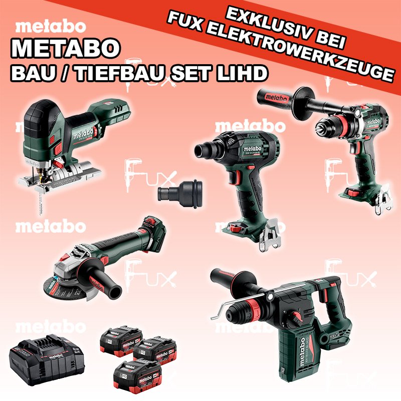 Das Ladenlokal bleibt vom 25. Dezember 2025 bis am 04. Januar 2026 geschlossen. Bestellungen und Lieferungen von Neugeräten werden trotz Ferienabwesenheit in gewohnter Fux-Manier entgegengenommen und ausgeliefert. Heute auf dieses Produkt 31% Rabatt! Zu "Bau / Tiefbau Set" von Metabo FULL Service: 36 Monate zum Nulltarif für Sie! Weitere Infos zum FULL Service Sparfux Aktionen FUX SPECIAL EXKLUSIV BEI FUX Metabo Bau / Tiefbau Set 1 LiHD Bestell- und Artikelnummer: Bau / Tiefbau Set 1 LiHD BS 18 LTX BL Q I Akku-BohrschrauberAkkuspannung 18 V Drehzahl 0-550 / 0-2000 U/min Drehmoment hart / weich 130 / 65 Nm Gewicht (mit Akkupack) 2.3 kgInfos STA 18 LTX 150 BL Akku-StichsägeAkkuspannung 18 V Hubzahl 1.000-3.500 /min Gewicht ohne Akkupack 1.9 kgInfos KH 18 LTX BL 24 Q Akku-KombihammerAkkuspannung 18 V Einzelschlagstärke 2.2 J Bohrleistung in Beton 24 mm Gewicht ohne Akkupack 3 kgInfos WVB 18 LT BL 11-125 Quick Akku-WinkelschleiferAkkuspannung 18 V Drehzahl 2.800 - 10.000 / min Ø 125 mm Scheiben Gewicht (mit Akkupack) 2.5 kgInfos SSW 18 LTX 300 BL Akku-SchlagschrauberAkkuspannung 18 V Anziehdrehmoment 300 Nm Werkzeugaufnahme 1/2" Gewicht 1.7 kgInfos Reduktions Adapter 1/2" auf 1/4" Aufnahme Max. 350 Nm Länge 45 mmInfos 3 x 18 V, 5.5 Ah, LiHD Akkupack18 V 5.5 Ah ( LiHD Akkus ) Infos ASC 145, 12 - 36 V "Air Cooled" LadegerätZum Aufladen aller Li-Power Schiebesitz-Akkupacks (12 V - 36 V). Ladestrom 8.0 AInfos Registriere die in diesem Set vorhandenen Metabo Maschinen auf metabo.ch, und ergattere dir bis zu 5 Gratis Akkus!Zusätzlich offerieren wir zu diesem Set einen Gratis Akku! Standard-Ausrüstung In diesem Set enthalten: BS 18 LTX BL Q I Akku-Bohrschrauber STA 18 LTX 150 BL Akku-Stichsäge KH 18 LTX BL 24 Q Akku-Kombihammer WVB 18 LT BL 11-125 Quick Akku-Winkelschleifer SSW 18 LTX 300 BL Akku-Schlagschrauber Reduktions Adapter 3 x 18 V, 5.5 Ah, LiHD Akkupack ASC 145, 12 - 36 V "Air Cooled" Ladegerät Listenpreis CHF 2'252.00 Fuxpreis CHF 1'539.00 inkl. 8.1% MwSt, inkl vRG Frankolieferung Kein Grauimport! Produkt bestellen 1 Stück 2 Stück 3 Stück 4 Stück 5 Stück 6 Stück 7 Stück 8 Stück 9 Stück 10 Stück Alle Angaben ohne Gewähr und solange Vorrat reicht!Wiederverkäufer werden? Produkt als PDF NEUHEITAKTION 31%