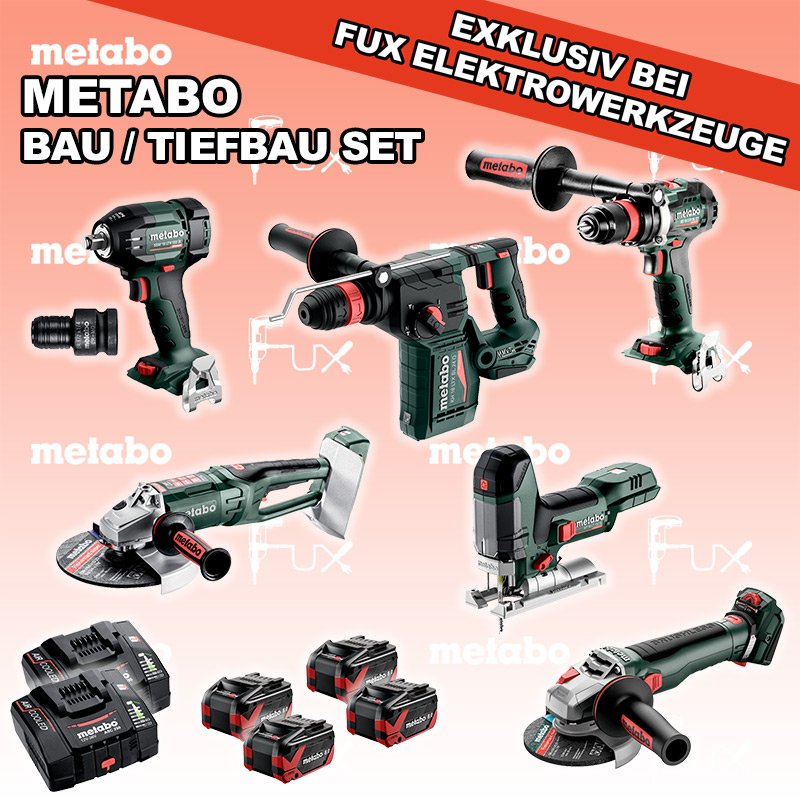 Zu "Bau / Tiefbau Set" von Metabo FULL Service: 36 Monate zum Nulltarif für Sie! Weitere Infos zum FULL Service FUX SPECIAL EXKLUSIV BEI FUX Metabo Bau / Tiefbau Set 10 Bestell- und Artikelnummer: Bau / Tiefbau Set 10 BS 18 LTX BL Q I Akku-BohrschrauberAkkuspannung 18 V Drehzahl 0-550 / 0-2000 U/min Drehmoment hart / weich 130 / 65 Nm Gewicht (mit Akkupack) 2.3 kgInfos ST 18 LT 130 BL Akku-StichsägeAkkuspannung 18 V Hubzahl 1000-3.500 /min Gewicht ohne Akkupack 1.5 kgInfos KH 18 LTX BL 24 Q Akku-KombihammerAkkuspannung 18 V Einzelschlagstärke 2.2 J Bohrleistung in Beton 24 mm Gewicht ohne Akkupack 3 kgInfos WVB 18 LT BL 11-125 Quick Akku-WinkelschleiferAkkuspannung 18 V Drehzahl 2.800 - 10.000 / min Ø 125 mm Scheiben Gewicht (mit Akkupack) 2.5 kgInfos WPB 36-18 LTX BL 24-230 Akku-WinkelschleiferAkkuspannung 2 x 18 V Drehzahl 6600 U / min Ø 230 mm Scheiben Gewicht (mit Akkupack) 6.5 kgInfos SSW 18 LTX 550 BL Akku-SchlagschrauberAkkuspannung 18 V Anziehdrehmoment 550 Nm Werkzeugaufnahme 1/2" Gewicht ohne Akkupack 1,4 kgInfos 4 x 18 V, 8.0 Ah Akkupack (LiHDX Akkus)18 V 8.0 Ah ( LiHDX Akkus )Infos 2 x ASC 290 Air Cooled" LadegerätZum Aufladen aller Li-Power Schiebesitz-Akkupacks (12 V - 36 V). Ladestrom 16 AInfos Adapter mit 1/2“ auf 1/4"Adapter mit 1/2“ Innenvierkant maschinenseitig und 1/4“ Innensechskant für schlagfeste Einsatzwerkzeuge mit 1/4“ SchaftInfos Registriere die in diesem Set vorhandenen Metabo Maschinen auf metabo.ch, und ergattere dir bis zu 5 Gratis Akkus!Zusätzlich offerieren wir zu diesem Set einen Gratis Akku! Standard-Ausrüstung In diesem Set enthalten: BS 18 LTX BL Q I Akku-Bohrschrauber ST 18 LT 130 BL Akku-Stichsäge KH 18 LTX BL 24 Q Akku-Kombihammer WVB 18 LT BL 11-125 Quick Akku-Winkelschleifer WPB 36-18 LTX BL 24-230 Akku-Winkelschleifer SSW 18 LTX 550 BL Akku-Schlagschrauber 4 x 18 V, 8.0 Ah Akkupack (LiHDX Akkus) 2 x ASC 290 Air Cooled" Ladegerät Adapter mit 1/2“ auf 1/4" Listenpreis CHF 3'157.50 Fuxpreis CHF 2'158.00 inklusive 8.1% MwSt Frankolieferung Kein Grauimport! Produkt bestellen 1 Stück 2 Stück 3 Stück 4 Stück 5 Stück 6 Stück 7 Stück 8 Stück 9 Stück 10 Stück Alle Angaben ohne Gewähr und solange Vorrat reicht!Wiederverkäufer werden? Produkt als PDF NEUHEIT 31%